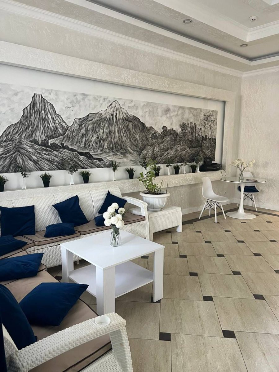 В пансионате есть собственная кухня с комфортным обеденным залом, где профессиональные повара приготовят для вас отменные завтраки, обеды и ужины ( организовав 5-ти разовое питание), а так же шведский стол с сезонными фруктами, горячими напитками и выпечкой.